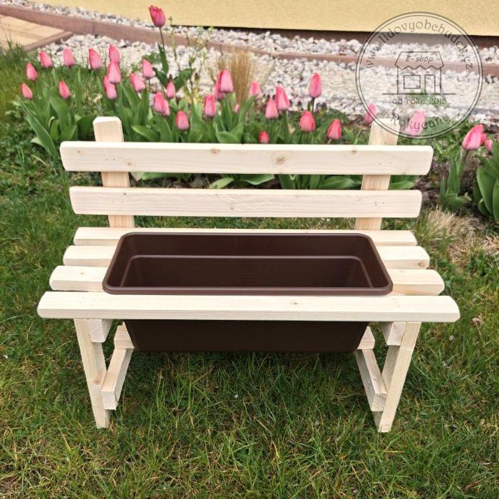 Dřevěná lavička s plastovým truhlíkem typ 40 je originální dřevěná dekorace k domu, ne terasu nebo na zahradu.